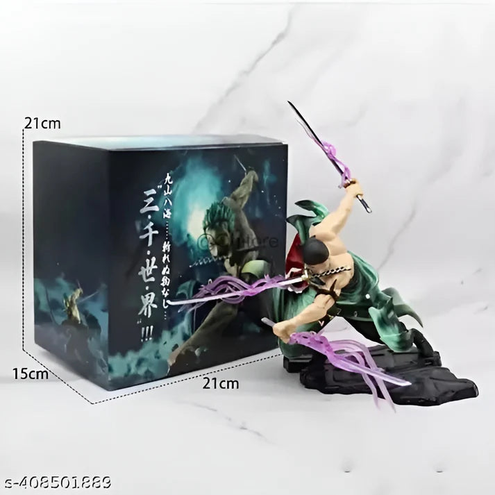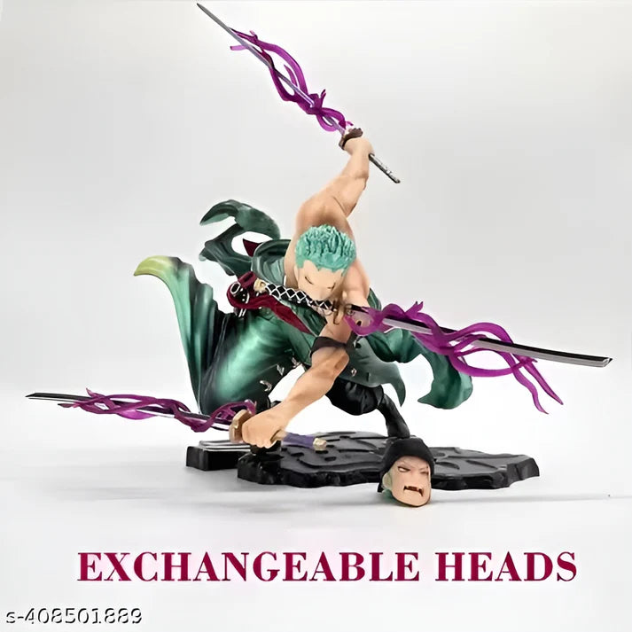 Name : One Piece Roronoa Zoro Black Base Action Figure Set Height- 18cm Authentic Design, Highly Detailed-Exact Replica of Image (Dual Head Attachments)